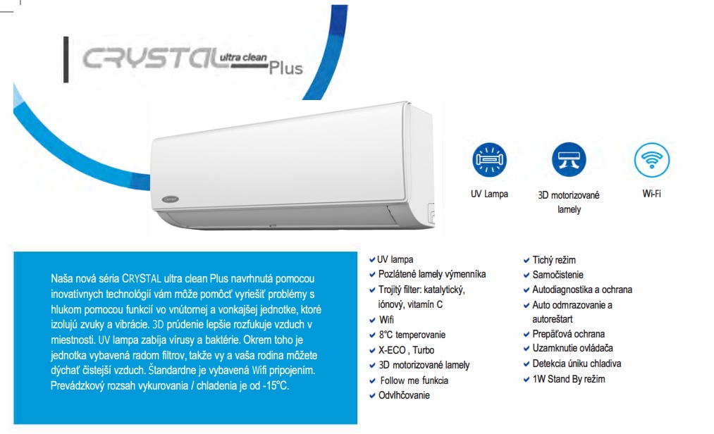 Klimatizácia CARRIER Crystal Ultra Clean Plus